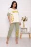 Пижама женская "Сыр": футболка с аппетитным принтом на груди и короткими рукавами, брюки длиной 7/8, прямые с карманами в боковых швах и на комфортном широком мягком поясе. 100% хлопок - комфорт и стиль.