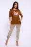 Пижама женская с футболкой и брюками на резинке и боковыми карманами.
