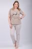 Наша пижама выполнена из мягкого и приятного на ощупь трикотажа, который обеспечивает максимальный комфорт во время сна и отдыха. Материал прекрасно дышит, не вызывает аллергии и раздражения кожи. Благодаря своей структуре он сохраняет тепло в холодное время года, и создает ощущение легкости и свежести в летнее время. Пижама представлена в нескольких размерах, включая большие, чтобы каждая женщина могла найти подходящий вариант, который подходит именно вам.