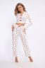 Белый цвет пижамы с красными сердечками придаст вам очарование и станет вашим любимым нарядом. Комплект состоит из штанов с эластичной резинкой на талии и рубашки с длинным рукавом, что создает образ домашней красотки. А изящные бантики из тесьмы добавят изысканности вашему образу.