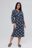 Платье женское из ткани с ярким принтом прямого силуэта, рукав 3/4, выполнено из трикотажного полотна кулика - 100% хлопок. Отрезная кокетка украшена пуговицами и английским воротником. Для практичности дополнено карманами.