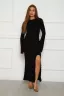 Женское обтягивающее трикотажное платье лапша – это роскошная универсальная модель для стильного и трендового образа. С длиной в пол оно идеально подходит как для повседневного использования в демисезонное время, так и для вечерних мероприятий летом или поход в ресторан на свидание зимним вечером. Стильный приталенный крой обрамляет фигуру, а утягивающие завязки придают стройный женственный силуэт, сочетая в себе нежность и элегантность. Этот модный наряд со шнуровкой отлично сочетается с различными аксессуарами. В основе платья - трикотажный однотонный материал, обеспечивающий качество и комфорт при носке. Приятное к телу теплое полотно позволяет коже дышать, долго сохраняет первоначальный вид и стиль платья. Длинные расклешенные широкие рукава добавляют изысканности обтягивающему платью в рубчик и гармонично завершают композицию. Возможность комбинировать с любой обувью, будь то летние ботинки, зимние туфли или кеды, дает шанс создавать луки для любого сезона, будь то весна или осень. Этот фасон исключительно универсален: он подойдет для офиса, прогулок или праздничных торжественных событий таких как, день рождения, вечеринка, фотосессия, корпоратив, на новогоднее мероприятие или просто выход в клуб. Красивый внешний вид делает его идеальным выбором в праздник для девушек и женщин всех возрастов, подросткам для школьных молодежных торжеств, девушкам на весеннюю прогулку и для деловой встречи, подружкам невест на свадебное мероприятие. Это шикарное коктейльное черное платье можно носить каждый день или сохранить для особых случаев – его привлекательность от этого не изменится.