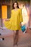 Женское платье с длинным рукавом. Расклешенный к низу за счет сборок. Треугольный вырез на полочке.