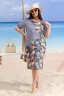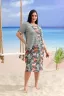 Платье женское полу-прилегающее, горловина округлая, рукав втачной короткий. В боковых швах разрезы. Верхняя боковая часть полочки, рукава и верхняя часть спинки из модной ткани "в полоску". В шве стачивания верхней и нижней частей полочки внутренний карман с горизонтальным входом.
