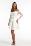 Утонченное приталенное платье длины мини с открытыми плечами с рукавами и нежным прилегающим лифом из кружевной ткани, а также струящейся юбкой со складками и декоративным бантиком на талии, выполненное из приятной к телу однотонной ткани.