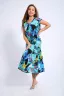 Сарафан женский выполнен из трикотажного полотна кулирка. Сарафан полуприлигающего силуэта, расширенный к низу. На полочке подрезные бочка. Накладные карманы в бочках, низ бочка с широкой оборкой, спущенное плечо, углубленная пройма, горловина и пройма окантованы.
