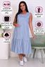 Сарафан женский расширенного силуэта с воланом по низу. Полочка изделия с нагрудными выточками. Горловина изделия округлой формы. Горловина и проймы обработаны окантовкой. Низ сарафана подогнут.