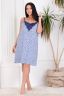 Сорочка женская из кулирки. Силуэт сорочки выполнен в виде трапеции, на бретелях. Кокетка декорирована синим кружевом и пуговицами в цвет.
