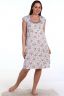Женская сорочка из кулирки. Рукава очень короткие, окантовка, цветочный дизайн, две расцветки — розовая и шоколадная, общая длина приблизительно до коленей. Размеры от 44 до 62.