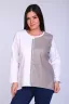 Женский джемпер. Данная модель уникальна. Задняя часть модели удлинена, перёд разделён на две части, между которыми находится полоса из страз. Одна из частей состоит из эко-кожи серого цвета. Джемпер оверсайз, подойдёт всем!