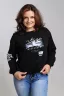 Толстовка оверсайз - трендовая модель, которая прекрасно впишется в любой модный лук. Толстовка длинной до середины бедра по полочке и удлиненной спинкой, со спущенной линией плеча. Стильная черно-белая печать. Манжеты и горловина из кашкорсе в тон ткани. Низ изделия регулируется кулиской.