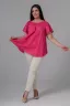 Туника женская, силуэт трапеция. Рукав реглан, короткий. Горловина собрана на эластичную тесьму. Низ туники фигурный. В лекалах учтена незначительная усадка ткани после стирки.
