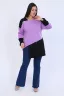Туника женская, комбинированная, прямого силуэта, спущенный рукав 3/4 с широкими манжетами, длина рукава от шва. Горловина с обтачкой, справа декорирована втачной молнией. Фигурный v-образный низ декорирован вшивной молнией. Удобно и практично.