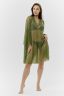 Туника женская пляжная, свободного силуэта с капюшоном и длинным рукавом. Декорирована хольнитенами.