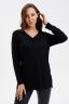Туника прямого силуэта, с V-образной горловиной, с разрезами в нижней части боковых швов. Спинка удлиненная. Рукав втачной, длинный. Горловина обработана обтачкой из основного полотна.