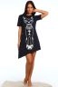 Стильная туника из кулирки, удлиненная с одной стороны. Рукава короткие, принт в виде египетской богини-кошки Бастет с коптским крестом — анхом