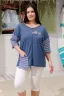Туника женская прямого силуэта выполнена из меланжевой х/б ткани и ткани в полоску. Горловина округлая. Рукав цельнокроеный со швом. Полочка из двух симметричных деталей. В шов стачивания деталей вставлена пата с большой декоративной, кокосовой пуговицей. На спинке кокетка. Отдельно изготовленный карман настрочен на полочку.