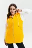 Жилет утепленный, прямой, на молнии, с капюшоном, с фигурной линией низа. Полочка с фигурными кокетками и удобными накладными карманами.